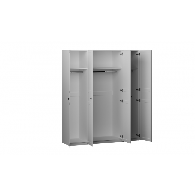Шкаф 4-х дверный Фрея с комбинированными дверями, Белый отражает тренд на лаконичность. А за красивым фасадом скрывается хорошо продуманное внутреннее пространство, на удивление даже более вместительное, чем можно было бы подумать, глядя на габариты (1800*500*2200мм).