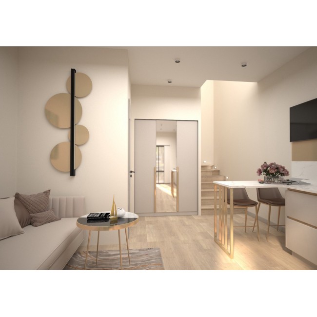 Индивидуальный проект светлой квартиры выполнен нашим дизайнером интерьера по предпочтениям заказчика. Изготовлена зона отдыха, шкаф и кухня.