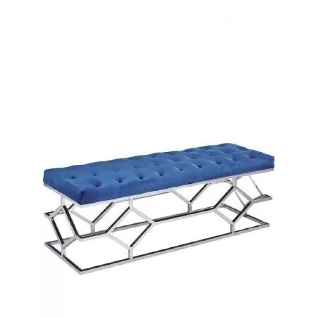 Банкетка синяя сидушка , каркас chrome металл (мягкая сидушка, металлическое основание)