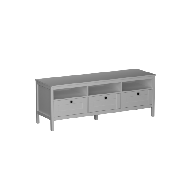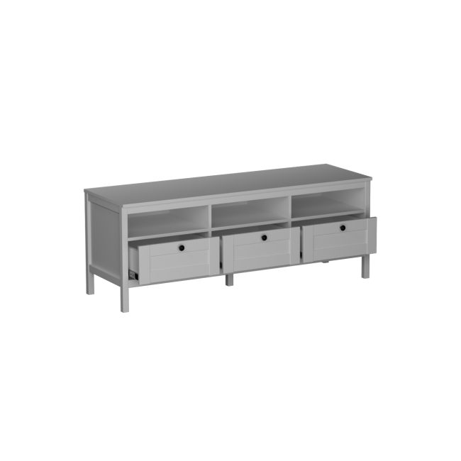 Тумба под коллекции Фрея в белом цвете дополнена выдвижными ящиками для личных вещей.
