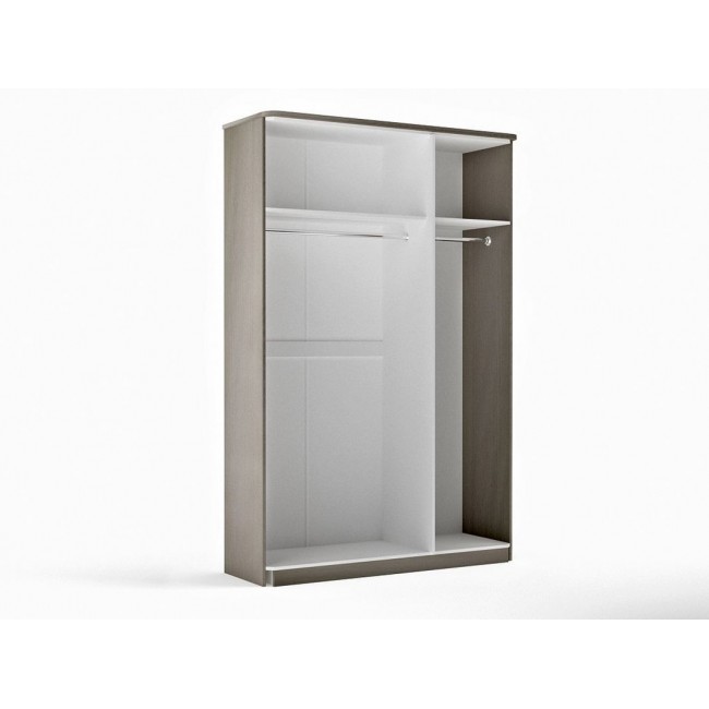 Шкаф для одежды Лацио разделен на два отдела. В них располагаются вверху: полка и штанга для вешалок.