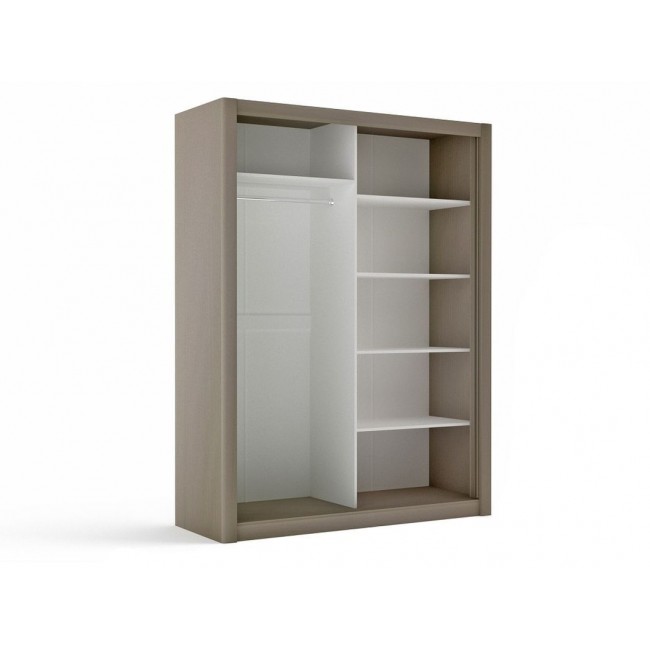 Шкаф-купе Лацио разделен на два отдела с полками и штангой для вешалки.