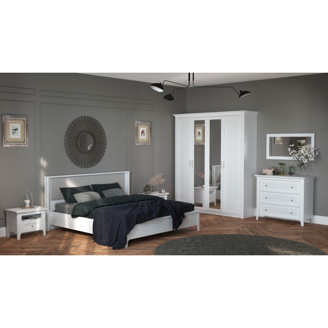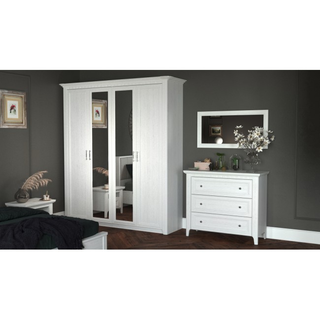 Спальня «Клер» сочетает в себе элегантность, функциональность и высокий уровень комфорта. Комплект включает кровать простой формы с жесткой или мягкой спинкой, вместительные шкафы со множеством полок для удобного и компактного хранения вещей, высокий или традиционный комод с несколькими ящиками, туалетный столик с зеркалом и небольшую тумбу.