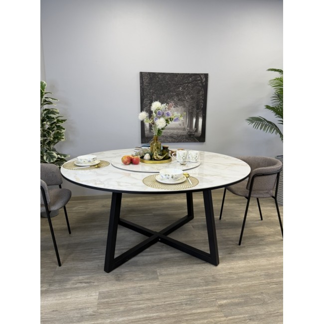 Круглый стол с уникальным механизмом поворотного центра стола, сделанный с керамикой которая защищает стол от любого внешнего воздействия, а опоры выполнены крестообразной формой, что к столу удобно сесть с любой стороны
