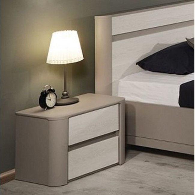 В прикроватной тумбе Лацио расположены два ящика. Шариковые направляющие надежно удерживают ящики при открывании. Окрурглая форма тумбы добавит комфорта при эксплуатации.
